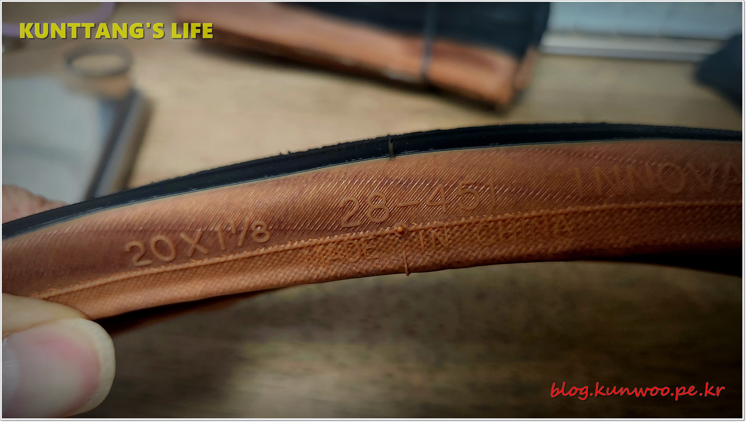 미니벨로에서 많이 사용하는 20인치 406사이즈 휠에 28C 타이어의 총 둘레(외경)은 1451mm 이다.
